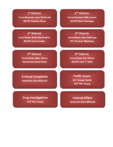 Officers will work with the Council Person and their Patrol Sergeant’s to resolve the issues.