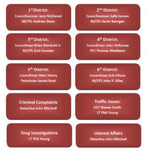 Officers will work with the Council Person and their Patrol Sergeant’s to resolve the issues.